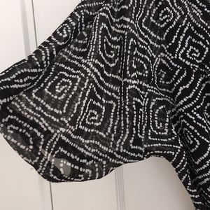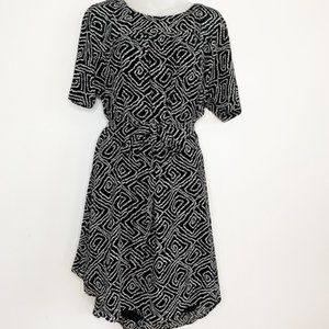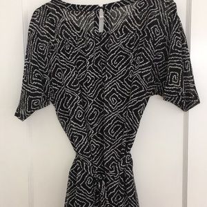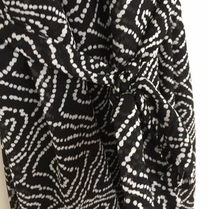 Pre owned but is like new Ann Taylor LOFT dress. It has black underlining and a sheer overlay. Is short sleeve. The pattern is polka dots. It has a tie that you can put in the front or back, and adjust to your liking.