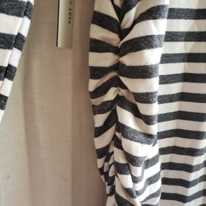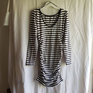 NWT Tart from Stitch Fix maternity dress. This is dark gray and white stripes with rouching on the sides. Great bodycon style to rock that baby bump! Fabric is super soft. Easy to get on and off too which is very important with maternity clothing. Size large.