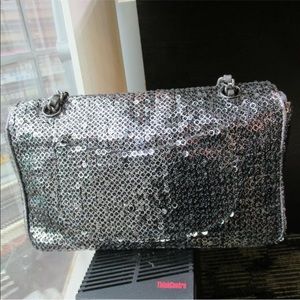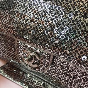 100% Authentic Chanel Silver Sequins Medium Double Flap