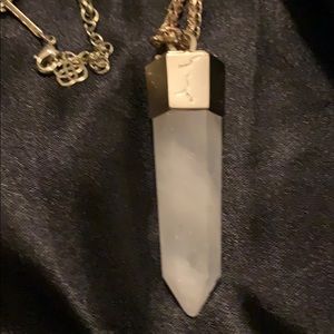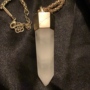Kendra Scott large quartz crystal long necklace. Gorgeous light color with natural variations of luminous off white inclusions. Heavy gold chain. Does have a few scratches and nicks, adds to the natural beauty. Excellent condition, and great layering piece.