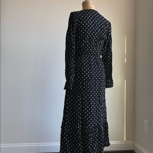 ZARA polka dot midi v-neck dress with front slit small NEW