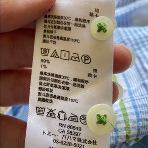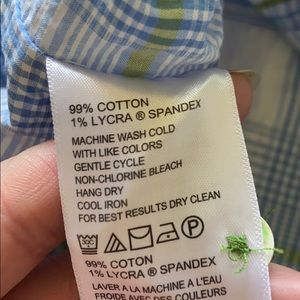 Excellent condition. No rips or stains. All buttons accounted for, plus 2 extra on tag. 99% cotton.