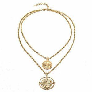 greek roman coin coins vinage style medallion coin coins layer layers layered nwot brand new without tags never worn boutique jewelry gift present chunky oversized yellow gold julius caesar greek goddess layered layers multi multi-layer yellow medallion ~ ROM