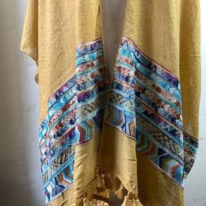 New one size tassel Kimono with sleeve opening. It is not sheer and the fabric does not stretch.