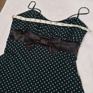 Rampage Black Teal Polka Dot Lace Dress Bow