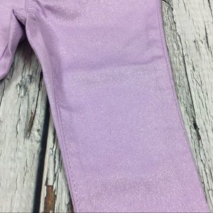 This is a very cute outfit for a girl. The shirt is done in teal with a colorful unicorn on the chest. The pants are a high stretch jegging done In sparkly purple. New with tags