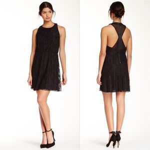 alice + olivia Chaplin Genuine Leather Flare Dress