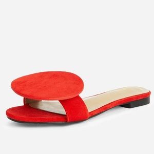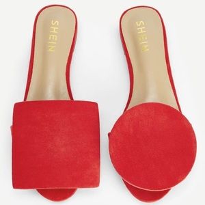 Shein Asymmetrical Flat Rond Carre Style Mismatched Sandals Slippers Red NEW.
