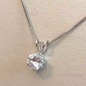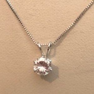 WHITE GOLD CZ PENDANT WITH 20 INCH STERLING SILVER CHAIN