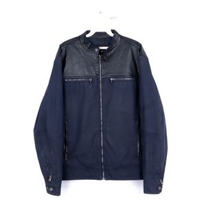 Michael Kors Mens Large Color Block Full Zip Moto Bomber Windbreaker Jacket Blue