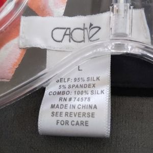 Black with red tone flowers. Sexy v-neck. Button down. Declotte and sleeves are black sheer. Body is a silky feel. Georgous piece to have in your closet. Cuffed button sleeve. Great year around. Dress up, jeans, professional. Like new. Just Feels good on. Get ready for compliments!