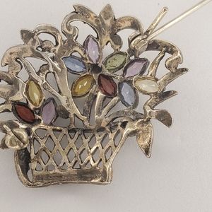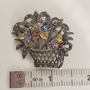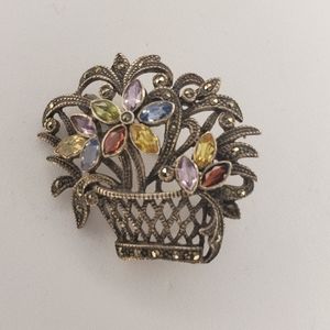 Gemstone marcasite flower basket pin