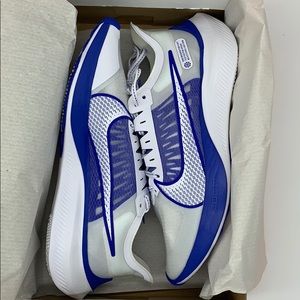 New in a box authentic LIGHTWEIGHT AND BUILT FOR SPEED. Designed to make fast go faster, the Nike Zoom Gravity is built to take you from quick tempo runs to winning races. Snappy forefoot propulsion and grippy, multi-surface traction combine to maximize your stride. Responsive Zoom Air unit in the forefoot gives you that propulsive, snappy feeling. The lifted height along the midsole makes room for more cushioning inside. Dual-density foam with a soft core in a firm carrier. . Springy outsole