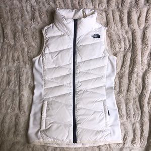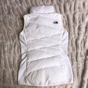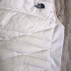 This 600 down vest will keep you cozy during your winter activities! The side stretch panels provide comfort and flexibility and add a cute touch. The white style with cream and midnight purple detailing is chic and adorable! Good used condition. Slight discoloration on back shown in last picture.