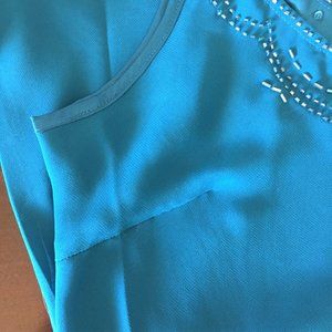 Vibrant blue sequin and bead adorned layered top