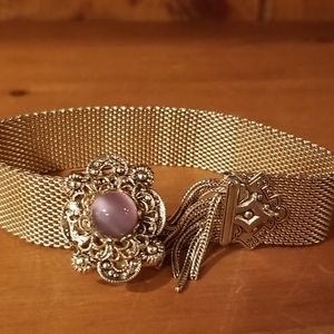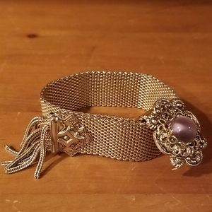 Vintage Tassel Adjustable Gold Tone Bracelet With Purple Stone
