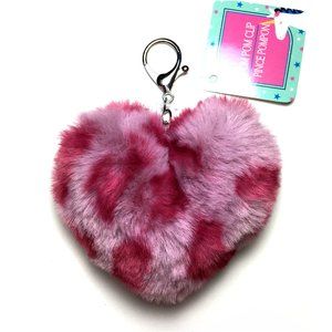 Fun dusty rose pink leopard/cheetah furry pom pom heart with silver clip. Perfect as a keychain or clipped to your purse/bag or backpack. Approximately 4" x 4". New with tags!