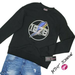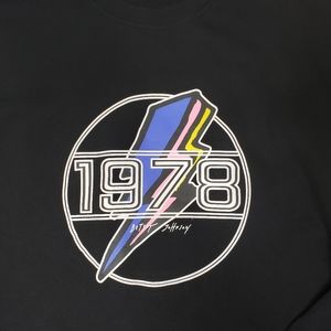 Betsey Johnson NWT performance flash back 1978 sweat shirt size medium. Black sweat shirt with neon flash back 1978 lighting bolt top.