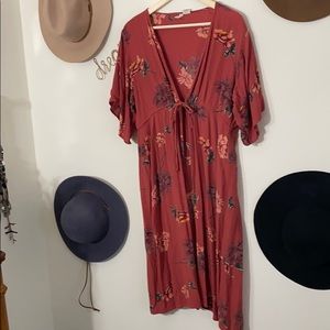 Floral kimono with elastic cinch and tie. Can tie or leave open! 42” from top to bottom. Hits mid calf. No signs of wear! Great piece to layer. Can dress up or down