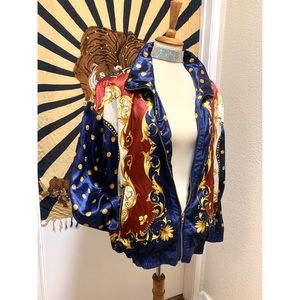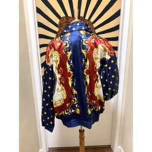 This is such a stunning 90s windbreaker Vintage Art piece its a MUST HAVE for any art and fashionista out there. It’s beauty comes with an amazing baroque art print and modern polka dot pop art. Vintage beauties are back IN at full speed, style this beauty with your favorite denim pieces for Swag to your Outfits 🌸 Note: This piece does have tiny scratches not visible: this adds History and value to a Vintage piece.