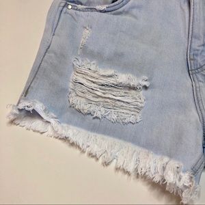 Light wash distressed denim jeans shorts