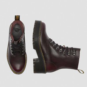 NWT - The Leona is packed with rugged features: a commando tread, an extra-empowering platform sole with a chunky heel, antiqued brass tunnel eyelets and a sleek silhouette. The result? A women's boot that strikes the perfect balance between femininity and the tough, rebellious Dr. Martens spirit.