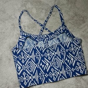 This blue and white aztec print crop top is SO stretchy and comfy!