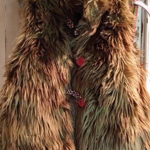 Has fleece lined pockets on the sides. Faux fur is in good condition.