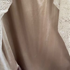 Great condition, small dark spot pictured. Shimmer with a lace overlay. Cream and toupee color.