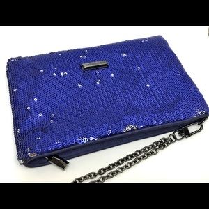 BCBGMaxazria Sequined Clutch Purse - Blue & Silver