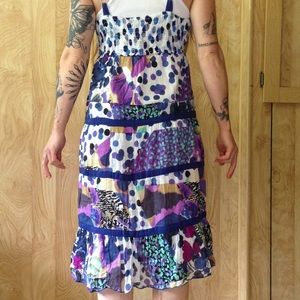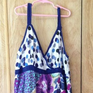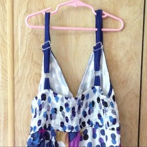 Very pretty size small summer dress by Le Grenier. 100% cottons, adjustable straps, stretchy back panel.