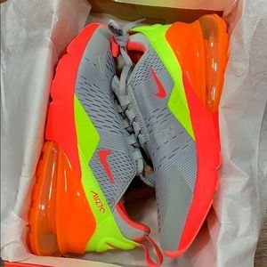 Brand new in a box-no lid authentic NIKE AIR MAX 270 GS 'WOLF GREY HOT PUNCH'