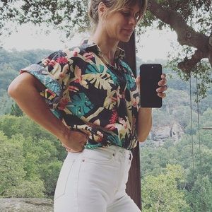 Vintage Tropical Print Button Down - M/L