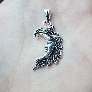 NWOT Silver Eclipse Moon Face Pendant. Approx 27mm x 15mm