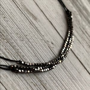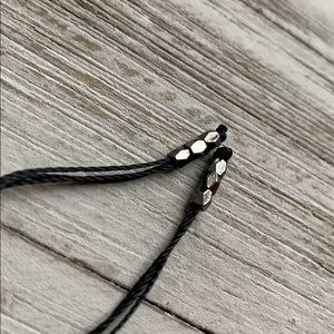 The tiny gunmetal & black tone beads provide 3 layers of sparkle. The threads slide to adjust the size of the bracelet. More sparkly beads adorn the ends. The beads have a look similar to pyrite.