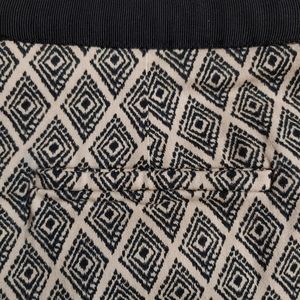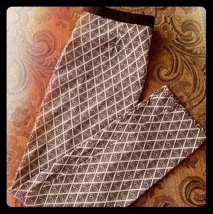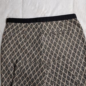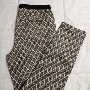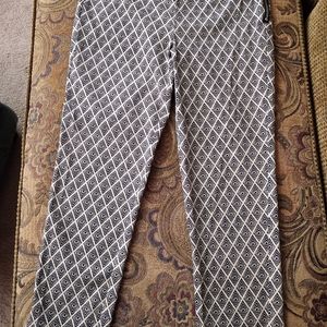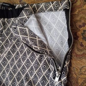 Black and cream pants, side zipper. Stretchy fabric, one back pocket. 25 1/2" inseam.