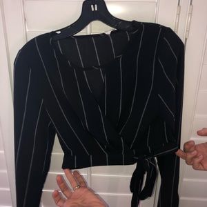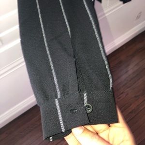 Black polyester top with white thin stripes