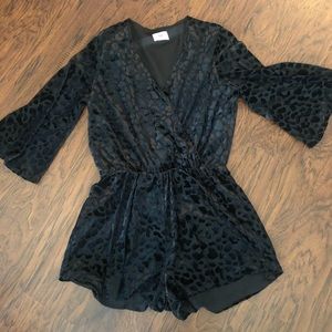 Fierce describes this romper perfectly. V-line neck and quarter length sleeves are a perfect fit. The velvet spots make this romper stand out.