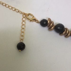 Vintage 16” With 3”Ext. Necklace With Round Faceted Natural Onyx Gemstone Beads (7mm - 10mm) Offset With Czech Glass Round Golden Discs. Gold Lobster Claw Clasp. Excellent Condition, Never Worn. NWOT (I-30)