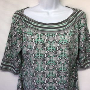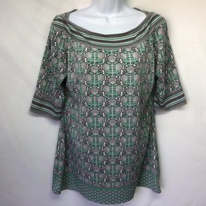 Max Studio Women's Top Green Gray Short Sleeve Boat Neck Floral Blouse Tunic Size L
