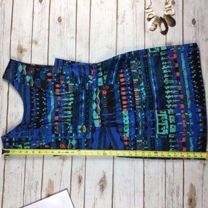 Tapestry print Vanessa dress by Plenty by Tracy Reese. Sleeveless stretch sheath dress, with round neckline in front and v-neckline in back, has two pockets in front and zipper in back. 97% cotton and 3% spandex, fully lined with 100% acetate. Size 4P, measures about 17" across from armpit to armpit, 14.5" at the waist, and 31.5" in length. There is a .5 inch tear in the lining which cannot be seen when worn (see pic.). Note: Stock pictures do not match the exact pattern of the actual dress. B4