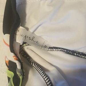 Black suit/floral pattern with deep front V, perfect for a vacation or honeymoon! Only worn once.