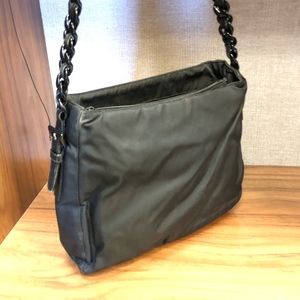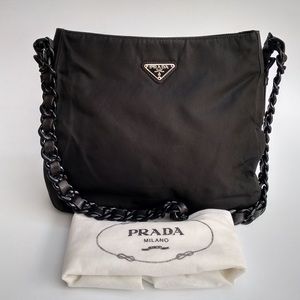 Take a sling bag crossbody slant made in PRADA Prada plastic chain shoulder bag nylon triangle plate NERO black leather Italy