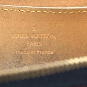 Authentic Louis Vuitton wallet in good condition. Exterior has wear and signs of color loss on surface. Edges have minor splitting and missing stitching. Minor coating loss to protective glazing of edges/corners. Interior has wear and heavy dark marks (recommend cleaning), and side edges have some rubbing. Slight vintage leather smell. Hardware has wear and zipper pull has scuffing and pitting with fading in color. Date code is shown in the picture. Box and paper tags are included. Sku# 31121
