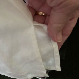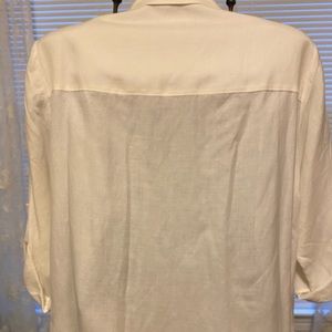 Light Cream or off white color blouse with side slits, button-up cuffs and cute pocket tab detailing on the front Women’s Plus size 1X. Nice quality shirt from Macy’s. Wear a solid cami underneath for career-wear or put a concert tee underneath to dress it down. Love this material! Can be machine washed.