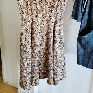 The tan midi dress is in EUC size 8 but fits a small or medium 4/6 size. Missing belt. It will look very cute with a thin red belt.