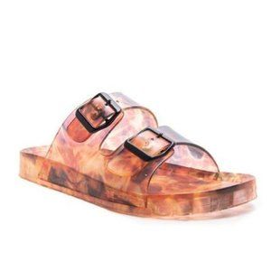 !! EXCLUSIVE !! Double Buckle Jelly Slides in Carmel Mix.......