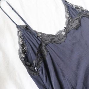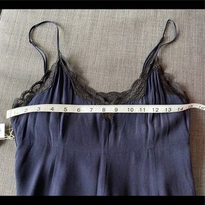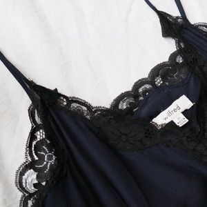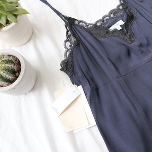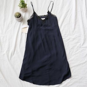 Aritzia Wilfred Leibnez Dress. Made of a crepe fabric. Features a contrasting lace neckline, empire waist and adjustable spaghetti straps. Fully lined and has a hidden zipper on the side.