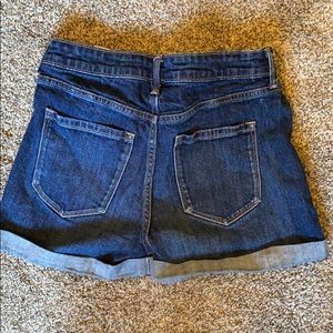 High rise Old Navy Jean Shorts. Size 2. Excellent condition. They are rolled but sewn this way at sides. Dark wash. Lightly distressed. Zip fly. About a 3-1/2 inch inseam. Smoke/pet free home.