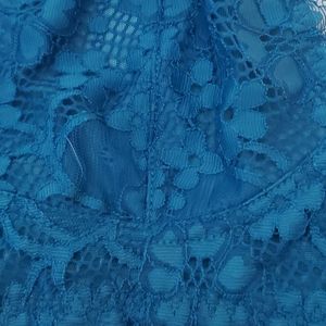 Sides and back are stretch lace with mesh lining and sewn-on elastic at top and bottom edges.